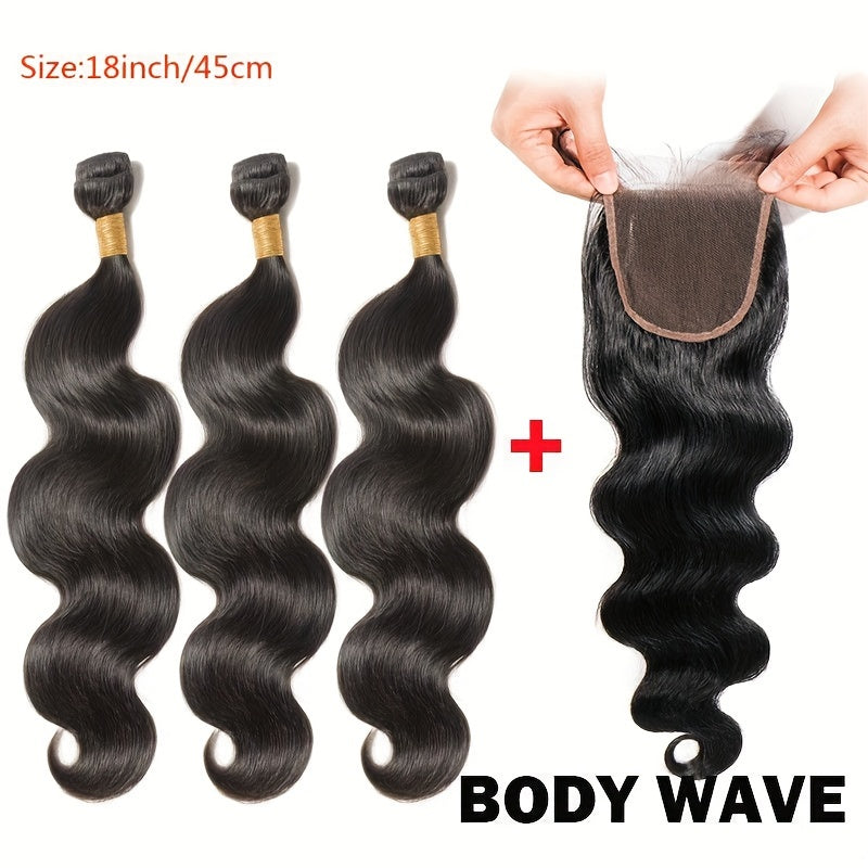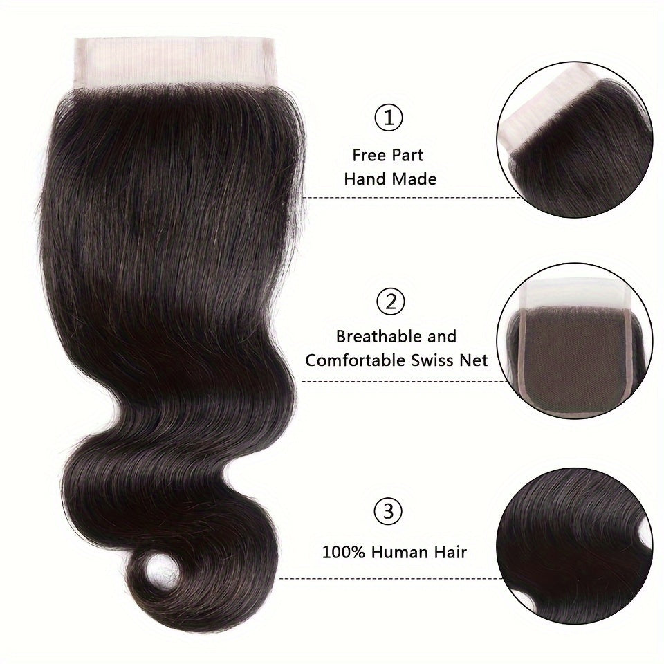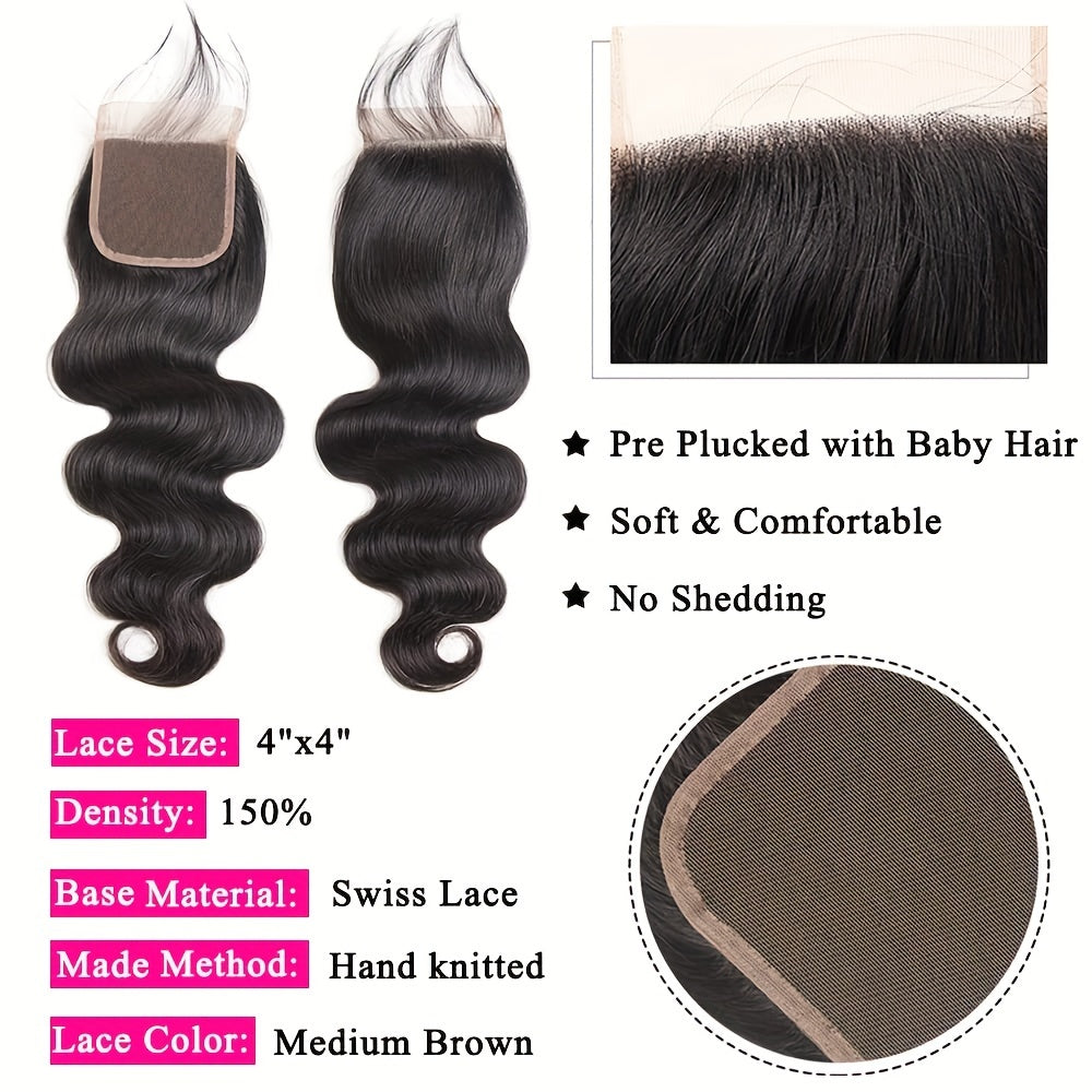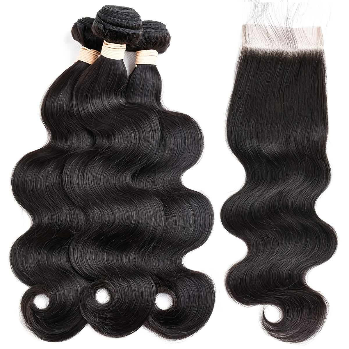 Brazilian Body Wave Virgin Human Hair Bundles With Lace Closure Human Hair Unprocessed Body Wave Hair Bundles With Closure 4X4 Lace Free Part Natural Black Hair