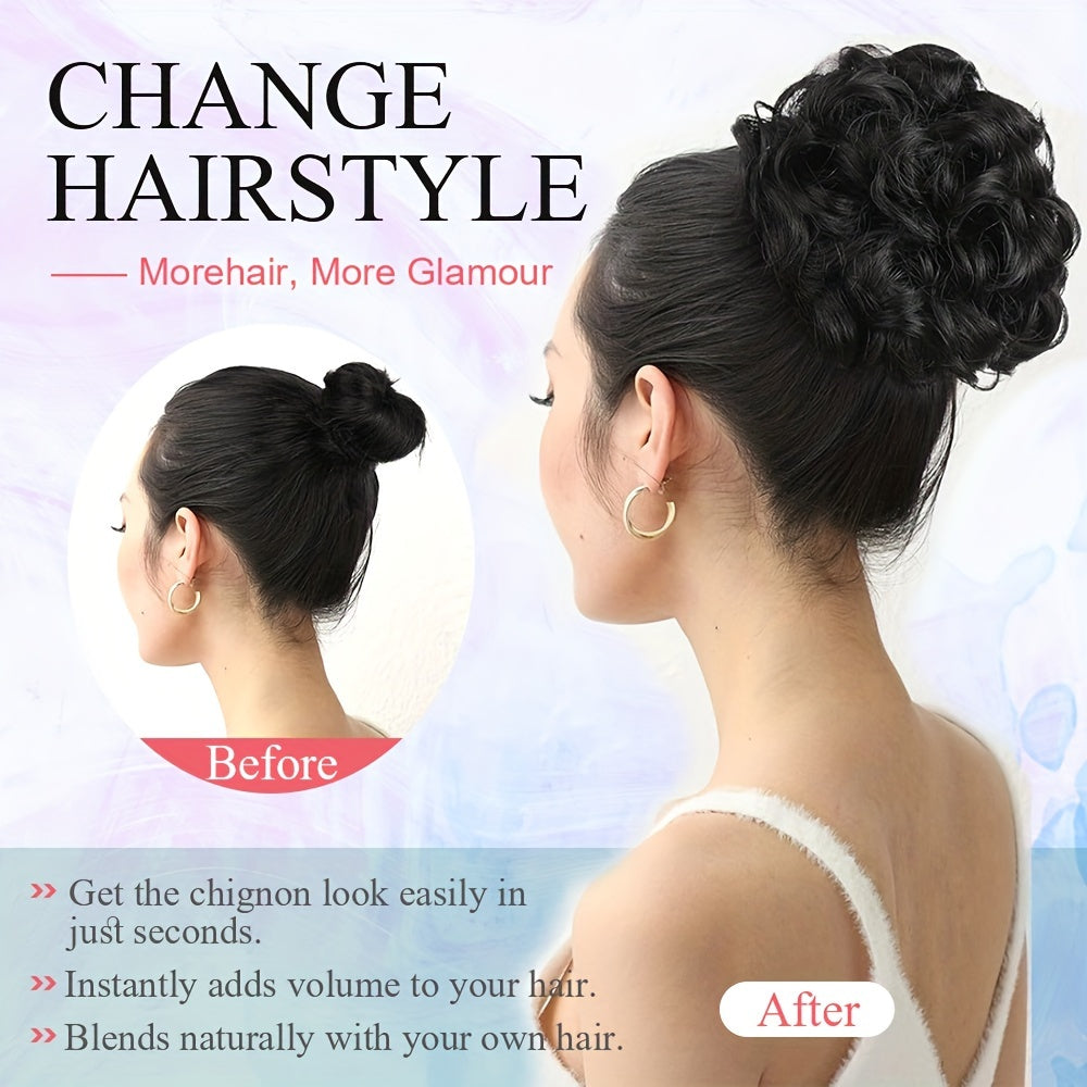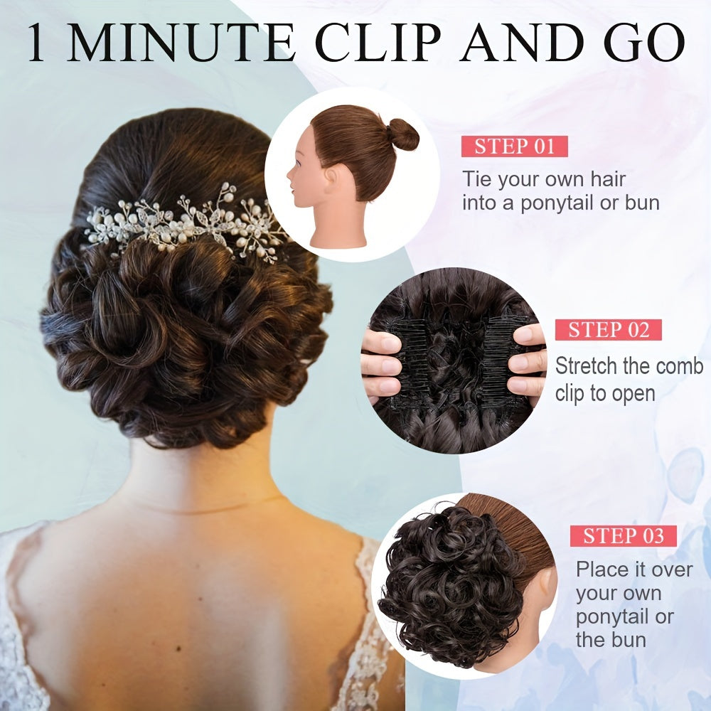 LARGE FULLER THICK Clip-In Curly Chignon Hair Extension | Voluminous Synthetic Updo Piece for Women - Easy Clip-In, High-Temperature Resistant | Perfect for Weddings, Parties, Daily Wear | Available in Brown, Black, Blonde, Hair Clip